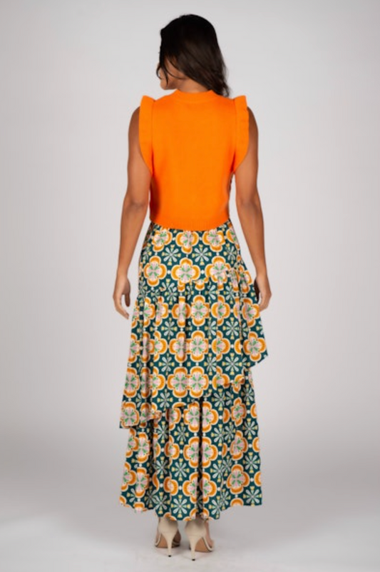 Contrast Trims Detail Scalloped Hem Mini Dress
