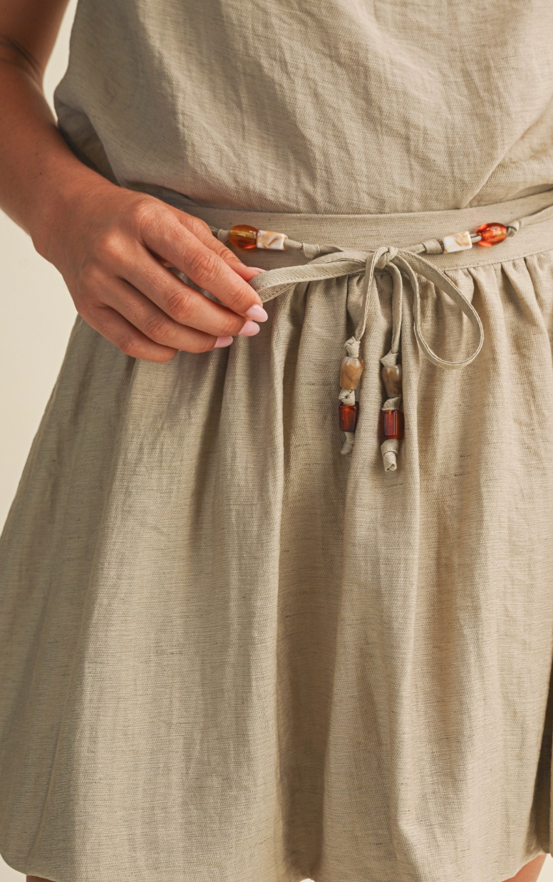 Beaded Waist Puff Hem Skirt