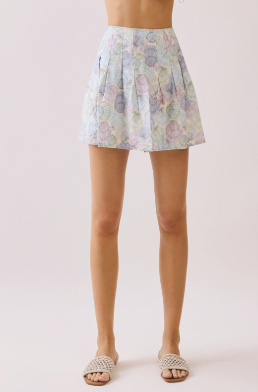 Pleated Detail High Rise A Line Printed Skirt