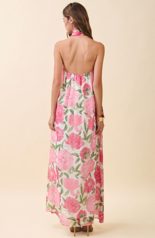 Strapless Floral Maxi Dress With Convertible Scarf